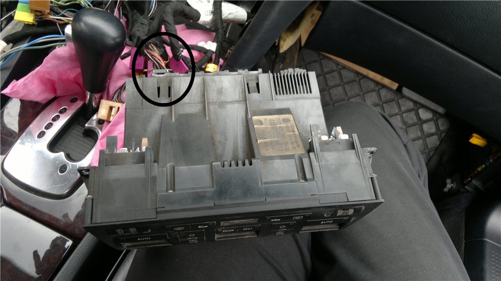 Вытаскиваем блок климы и вот нужная фишка управления блока клапанов крайняя левая.