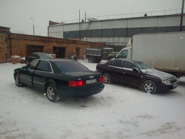 Теперь история приобретения авоськи (если интересно). Как человек сумбурный, недальновидный и непоследовательный (слова жены), все машины приобретал, во всех исключительно случаях, непонятно чем руководствуясь. Так и в данном случае. Началось всё месяцев 7 назад. Родный брательник (гад и маньяк автослесарь), совершил мне один единственный звонок из славного года Пскова. Дескать, пацан из соседнего бокса по малярке, аудюху собирается продавать, ничё, говорит машина, вроде на глазах все время, с виду ухоженная. Ну а чо за аудюха , спрашиваю я, зевая, пол года уже ходящий пешком продав тому же брату Сашке весьма удачно мною купленную ранее в отличном состоянии Тойоту Карину Е (зачем покупал и чем руководствовался, когда продавал, даже для самого себя до сих пор тайна). А8 Санька говорит, 300 кобыл из под ж..ы рвёт. Цвет как у твоей первой жиги 99, я полазил под ней, говорит, сухо везде, автомат живой, движка чёткая, цена вроде как нормальная. Приподнявшись с дивана и недобро блеснув увеличившимся левым зрачком, я, всё также вяло (надо же марку держать), изрек: ммску штоль пришли позырить чо за аппарат, изнутри, мол, одну (не терплю грязных и поюзанных салонов) ну и как нить снаружи щелкни. Через пять минут ммска, грохот где-то в недрах мозга от упавшей планки (так всегда начинается