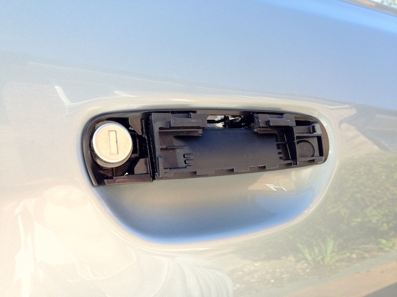* Еще хорошая новость: на моей машине можно оставить личинку без проблем. Она живет под ручкой. Если личинка нужна, то накладка сдвигается вбок и снимается, окрывая доступ к личинке. Для этого там есть специальный "зажим", который отпускает накладку, когда ручка отведена и зажим нажат. Накладка сдвигается и вот она полностью функциональная личинка.