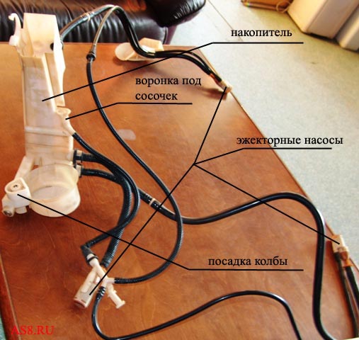 Остальные детали, такие как колба, накопитель, шланги и т.д. лучше покупать БУ, новые они либо не поставляются, либо безумно дорого стоят.