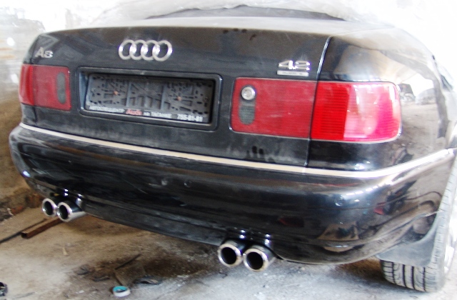отрезаем под корень две небольших трубы от глушителя и ввариваем первую насадку.......ко второму отверстию привариваем трубу Г-образную...она идет между бампером и запаской...прям идеально вписывается.....на другой стороне...снимается пластиковая защита....и делается подвес для трубы...и приваривам другую насадку....вот все.