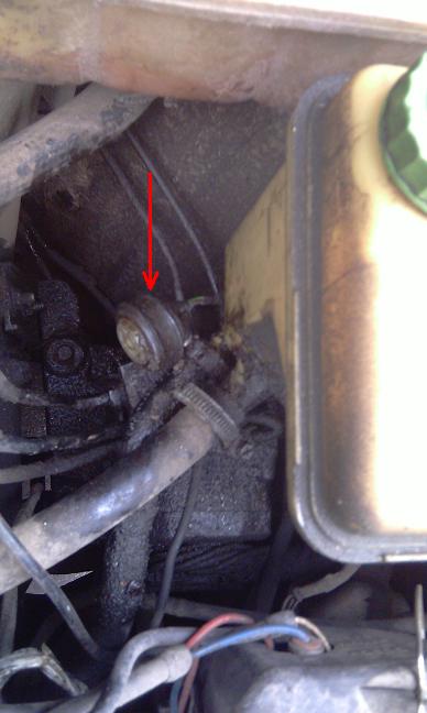 Разъем находится под бачком антифриза, провод уходит за левое крыло
