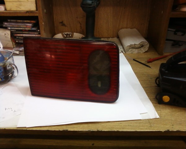 ВИдел где-то на форуме а8 с задними фарами без кнопки багажника,мне понравилась затея,и захотелось себе.Так как у меня на машине вообще кроме замка зажигания и бардачка личинок нет.было бы в тему и кнопку выкинуть.Где такие фары брать я не знаю и не задумывался даже.Интереснее самому сгородить.Соответственно левая фара направо не встанет,также как и стекло целиком с него.А вот сам белый элемент вполне.Имея как раз 2 дефектные внутренние фары начал извращаться.Начал с левой.Профессиональным Эдуардовским инструментом ,под названием резак-протачиваем кромку с 3 сторон и отверткой отделяем.С 4 стороны пропиливал ножовкой.Главное не спешить и пропиливать основательно,а то как минимум трещинами пойдет стекло.