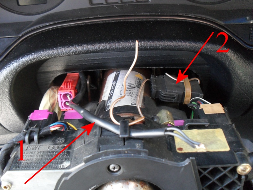 1 - Контакты на подушку безопасности (Air Bag) (они проходят через контактное кольцо, потом переходят в спиральный шлейф, а со шлейфа непосредственно на подушку)