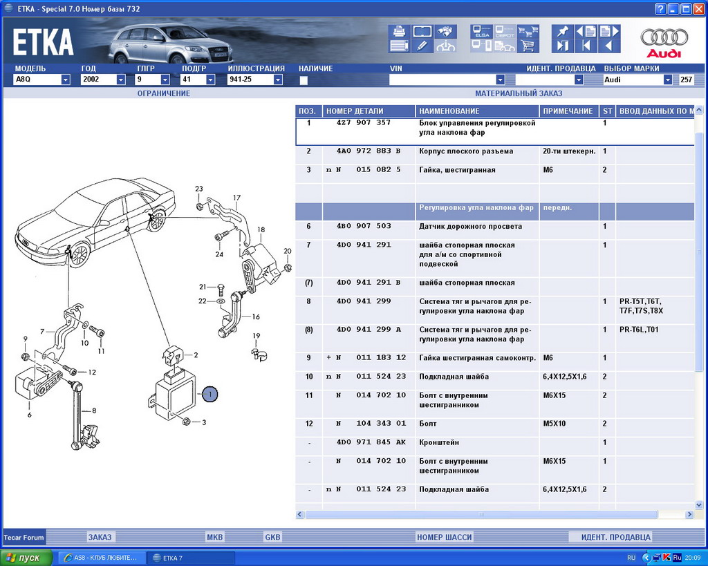 7. Выбрать функцию 04 (базовые установки, в группе ввести 001, подождать пока фары регулируются и обновляется инфа в окне программы.