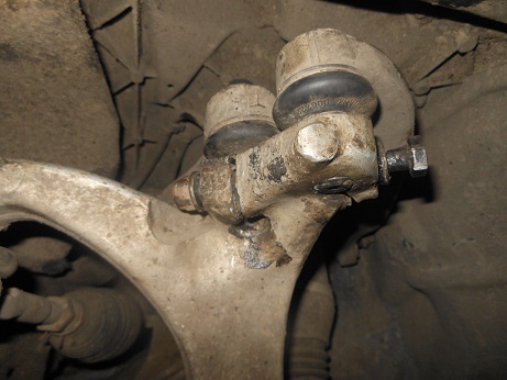 3 Откручиваем болт крепящий два верхних рычага,как правило он закисший поэтому может придется его отмачивать не один день,но я при придыдущей разборке всегда болт намазывал какой либо смазкой,поэтому я его открутил без труда
