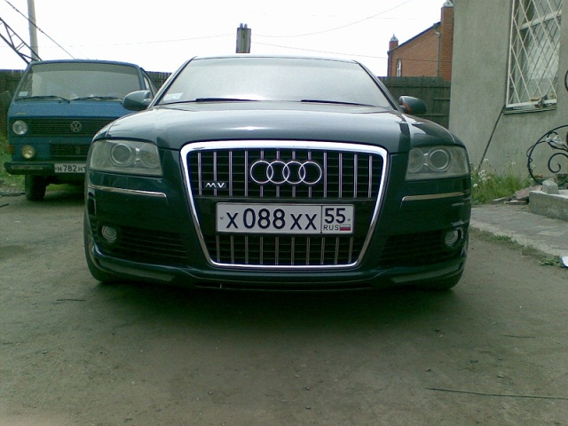 передумали делать Answer.Середину выполнили в стиле новых ауди а бока получились как на абэтешном.В щели поставили сетку из нержавейки,но думаю надо в черный лак закатать.Клиренс уменьшился на 3 см.В целом получилось не плохо,но думаю найдутся скептики охраняющие внешний облик А8 в первозданном виде.А Я не хочу как у всех