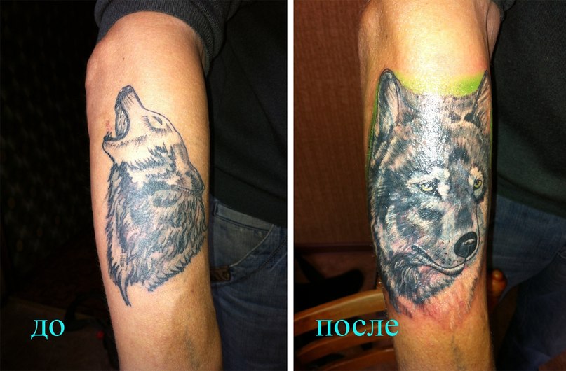 Вот таких волков после турков приходится переделывать))) не татуируйтесь в турции ребята))) турки не способны сделать нормально тату- тем более в курортных городах. Обходите стороной местные тату салоны. Это уже второй человек, которого я переделываю после отдыха в турции. Будет еще сеанс...