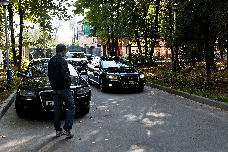 И еще немного постоять... Водители соседних машин многократно пытались наехать друг на друга, засмотревшись на длиннейший кортеж. Мимо такого регулировщика не проедешь. - Кроме А8 других машин нет, все остальные вымерли? Скоро с час уже стою