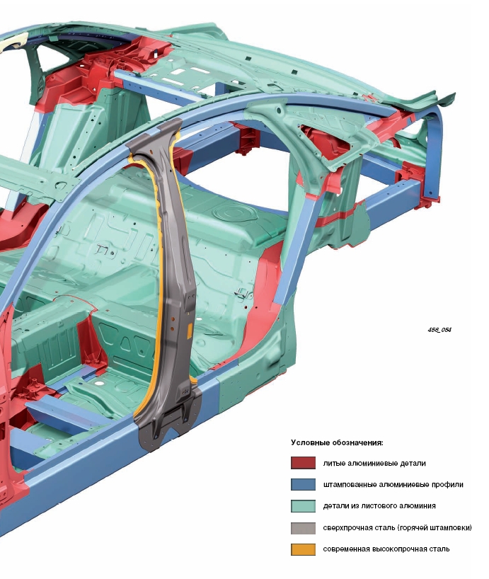 кузов выполнен из сплавов аллюминия,их 7 видов использовано.