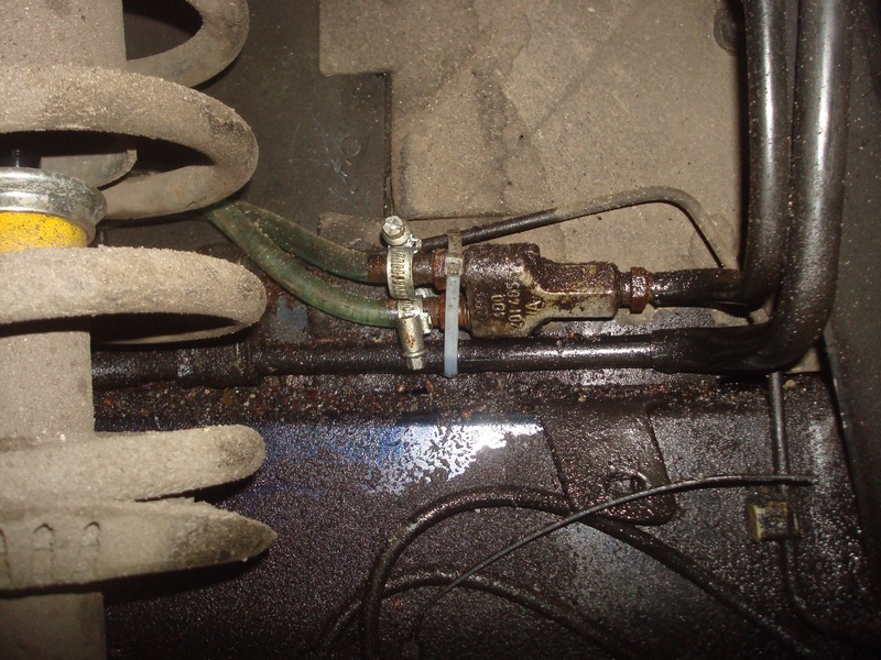 проблемный тройник сзади машины, перед задним правым колесом (там-же насос вебасты)...