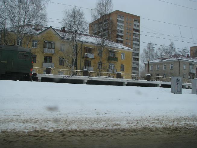 Мозг умышленно отключен, указатели не читаю, куда ехать - думает навигатор. Вот он меня свернул на какую - то второстепенную дорогу, покрытие хорошее, а снег здесь никто не убирал. Машина начала всплывать на снежной каше, скорость пришлось сбросить. чтобы не выпускать из рук фотоаппарат. У кого под окном Авоська, а у кого и электричка - круто! Дубна - это вам не Москва! Едем дальше, есть охрана и дома под ключ, рыбы - нет