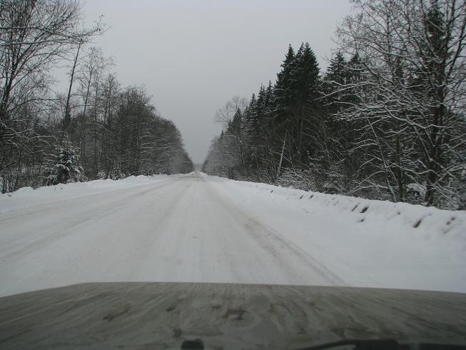 . По дороге обратно, трасса была сильно заснеженной, пришлось фотоаппарат отложить в сторону. На завтрак я явно опоздал, зато точно попаду к обеду. Еще с сервиса позвонили, сказали что Авоську можно забирать, что я и сделал по возвращению. Самые смелые рыбешки позировали уже в Москве, у подъезда