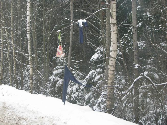 Растерзанный местными волками или последствия вчерашнего веселья. Упс, съезд, поедем именно туда. Почти Подмосковная Финляндия Дорога заканчивается домом отдыха. Рыбы - нет. Еду обратно.