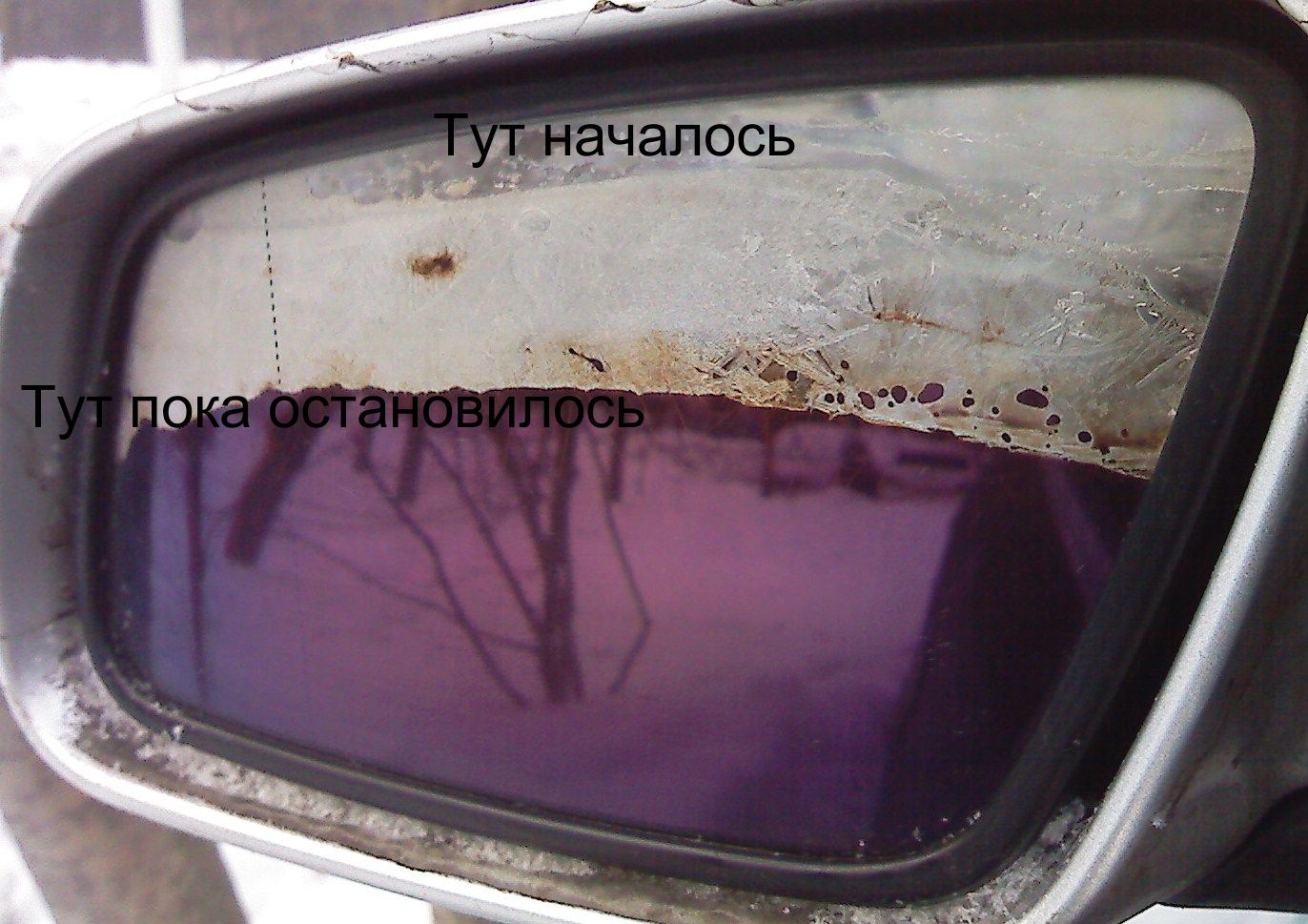 Я почему подумал про пленку, потому, что между верхним "темным" зеркалом и внутренней поверхностью наблюдается жидкость, которая на фото замерзшая. Поэтому верх не отражает. Москву люби, не люби, а ездить приходится.