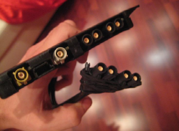 4 разъема, которые входят в антенные гнезда, тож с огрызками проводов....