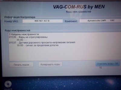 Сделал регулировку фар на СТО,блок управления был снят.Приехав домой подключил блок управления и подключил шнурок,ошибки были такие