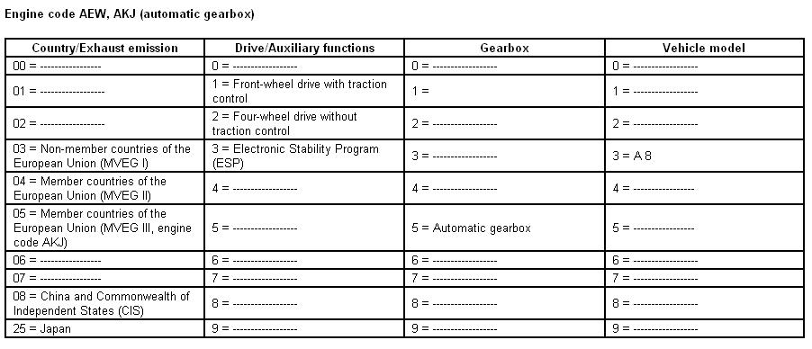 глянул кодировки для других движков. там почти тоже самое кодировка зависит от страны и экологических норм. там четыре класса mveg1 mveg2 mveg3 civ. последний - это китай.