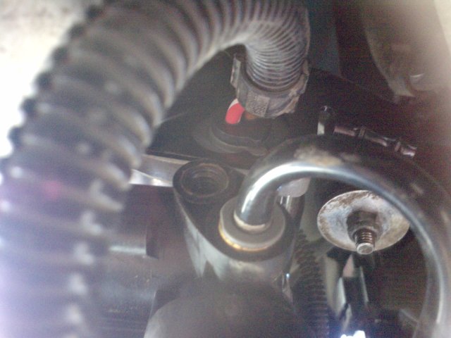 И откручиваем ключиком на 10 штуцер воздуховода. Тут