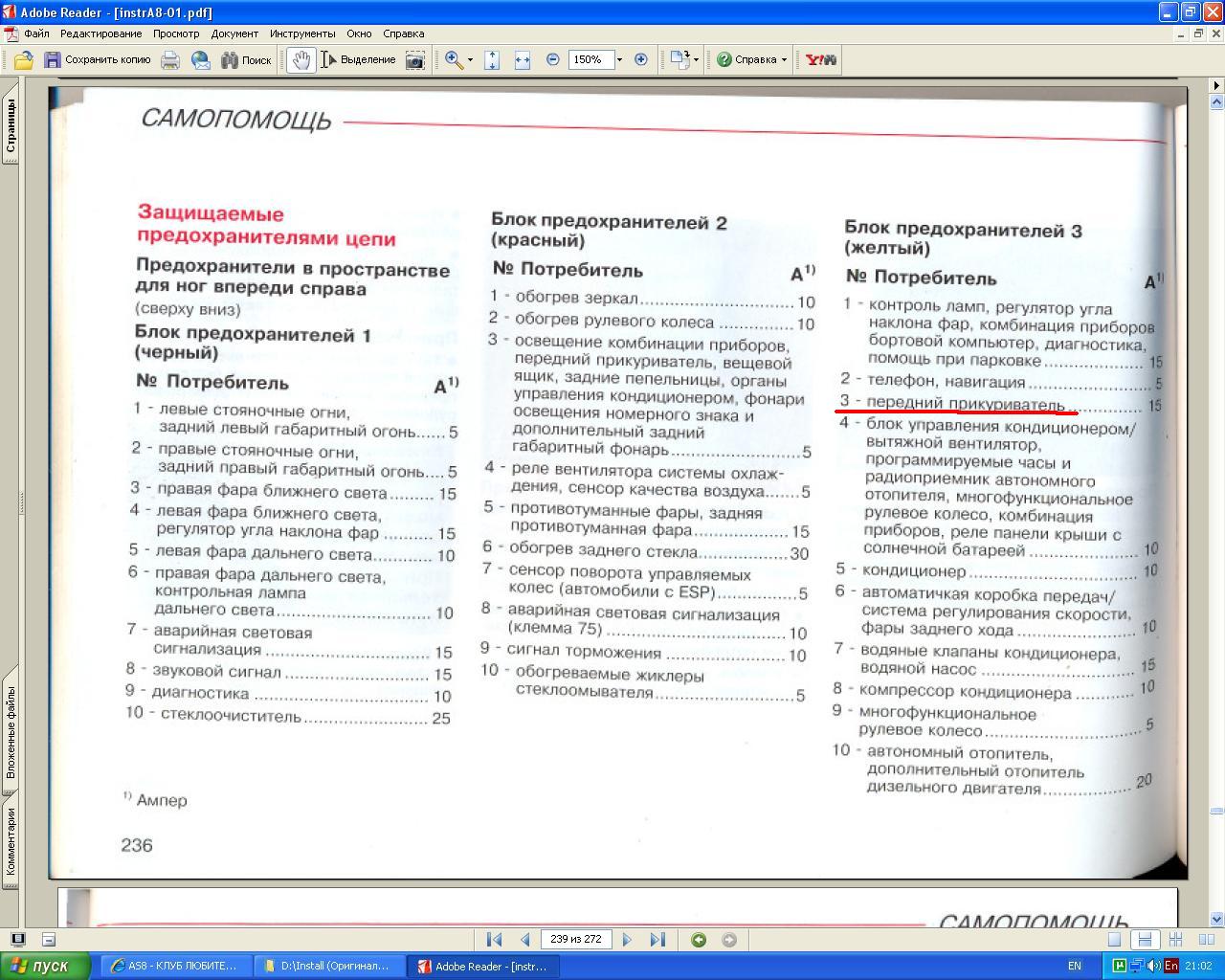 Не подскажите на переднией и задний прикуриватель какой предохранитель по счету и на какой колодке(какого цвета ) . как он по немецки обзываеца ?