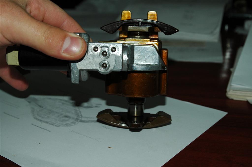 на нижней фотке хорошо видно как верхний башмак находится в неподвижном состоянии пока не будет достаточного давления масла,чтобы стопорный палец разблокировал ход поршня,а нижний башмак подпружинненый,он является успокаителем при заводке.