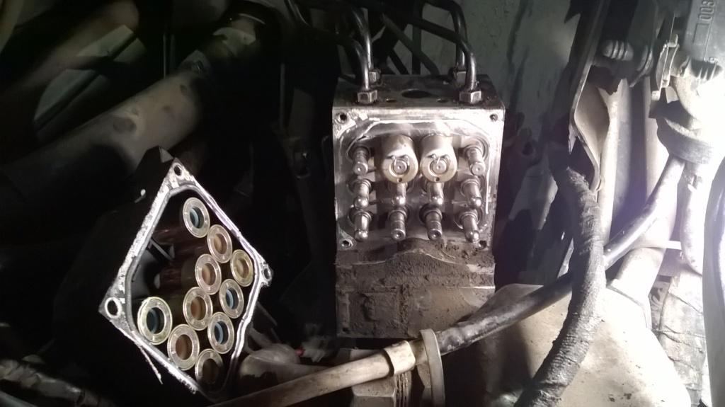 . Думаем дальше: Как система определила данные ошибки? Для определения неисправности выпускного клапана блока АБС (задних контуров) СИСТЕМЕ необходимо запустить тест: подать давление на каждый из клапанов по очереди, по единственному датчику давления в системе ( находится в насосе под бампером слева) она видит исправность клапанов по изменению давления в системе!!! Получается проблема в механике! Вскрываем блок клапанов и видим: