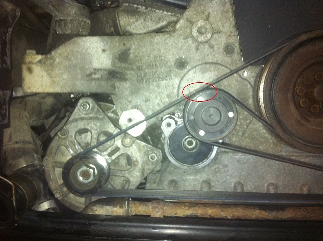 Ролика обводного нет. Странно, что ремень вообще натянут и не слетел.