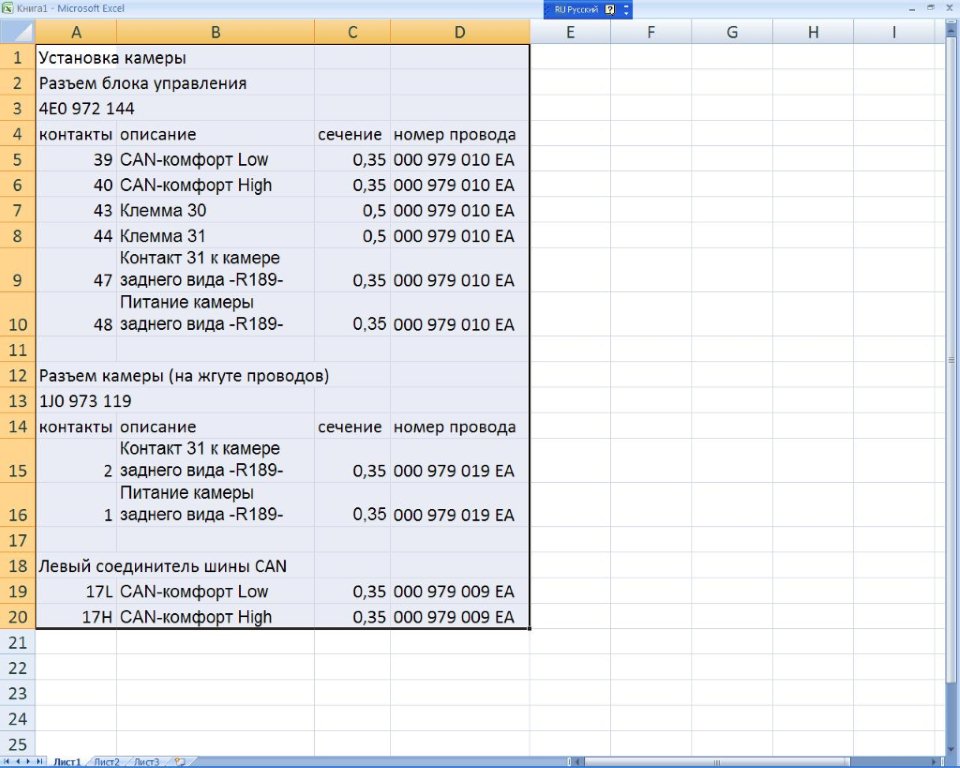 Для шины CAN, и желательно питания камеры нужен витой кабель, чтобы не тратить время на поездки в Москву, я заказал готовый провод CAN 000 979 987, провод сечением 0,5 мм2 000 979 981 А для питания блока. Для разъемов ремонтные провода с наконечниками: Для блока предохранителей клемма 000 979 023 E
