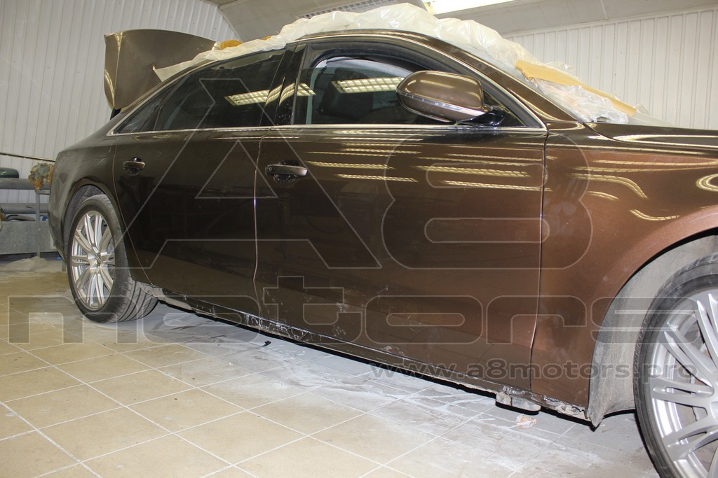 К нам в кузовной цех пригнали автомобиль audi a8 D4 со сложным скользящим ударом. В результате аварии пострадала средняя двухкомпонентная (алюминиево-стальная) стойка.