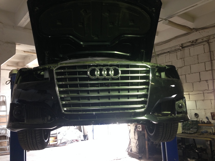 Бампера, капот, крышка багажника, фонари, фары, направляющие бамперов, блок комфорта, блок электроники, перепиновка разъемов фар, блок корректора, возможно еще камера на лобовом, ну и самое главное найти того кто кто все это правильно пропишет и сделает параметрирование.