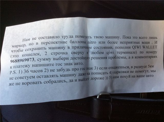 Понятно что не из приятных.В таких случаях нужно обращаться в органы.Но здесь может быть и такое,что берут на понт-заплатишь,так заплатишь,нет,так нет.