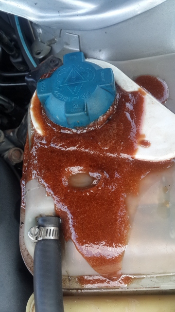 У тебя что бурлило в бачке при перегазовках? Вообще не понятная субстанция как будто в антифриз добавили много состава для ремонта радиатора , радиатор забило ,температура поперла и выплескнуло в бачок