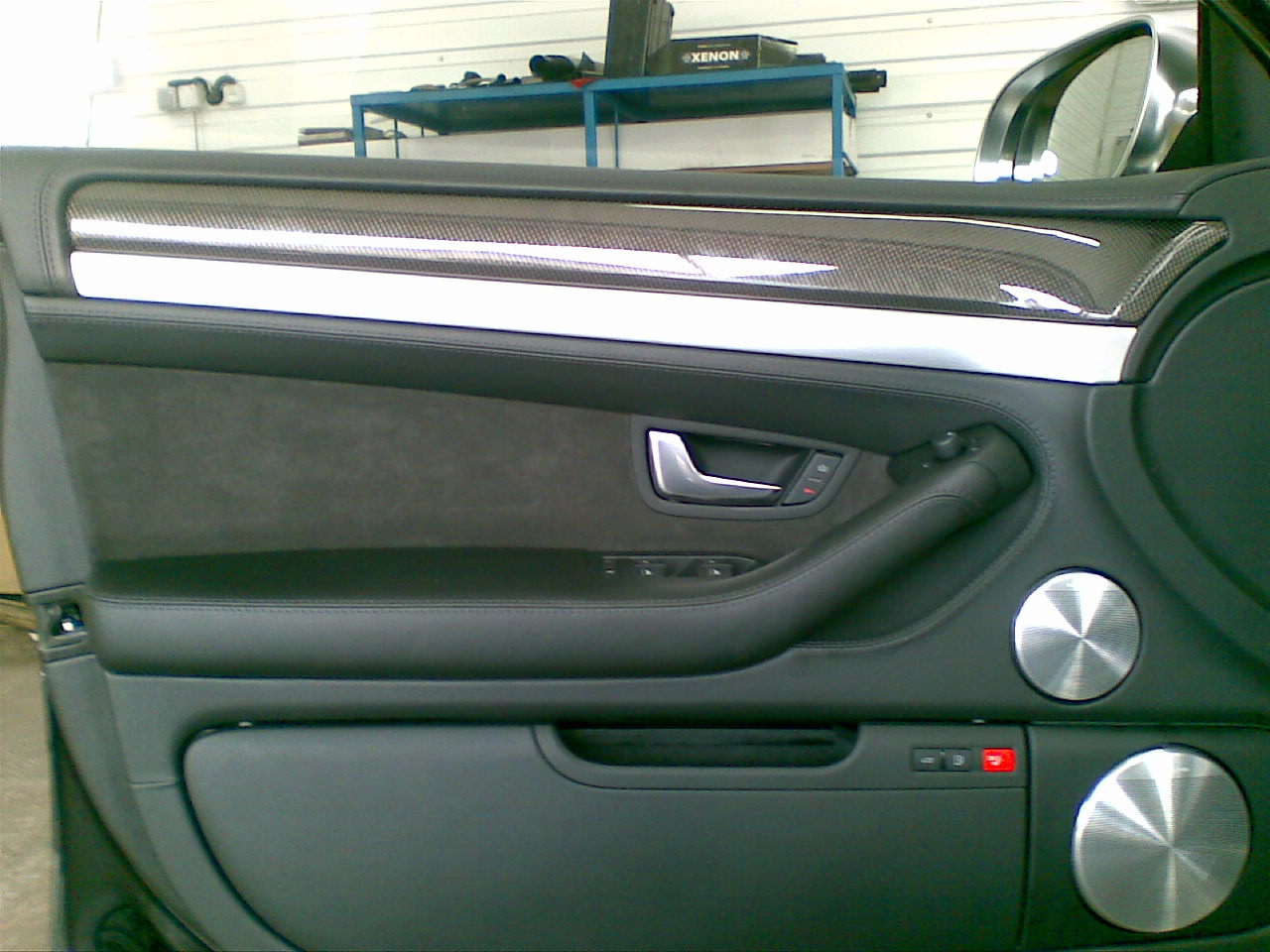 с начала снимается панелька под цвет дерева (карбона), не та где электропривод окна, а выше самая длинная на всю дверь