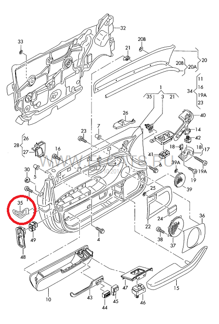 Отдал в перетяжку кожей дверные обшивки. При разборе треснула деталь (обведена красным на фото). Номер на обороте 4Е08673931, но он почему-то не пробивается по каталогам. Как ее заказать?