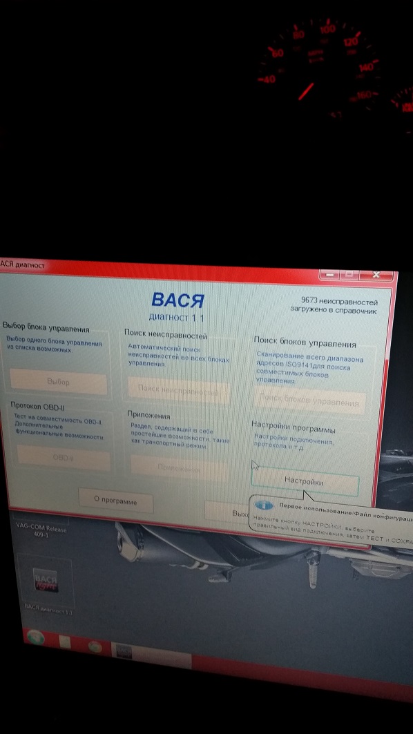 Пробовал подключиться через Вася Диагност 1.1 а так же через программу которая шла со шнуром. Фото ниже.