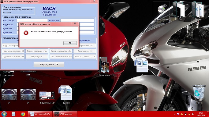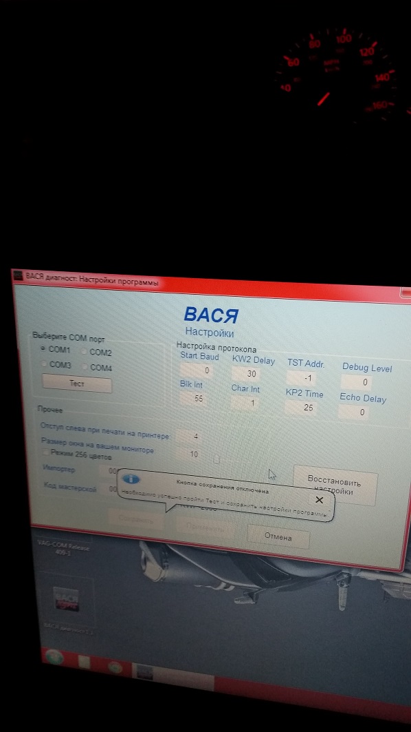 Пробовал подключиться через Вася Диагност 1.1 а так же через программу которая шла со шнуром. Фото ниже.