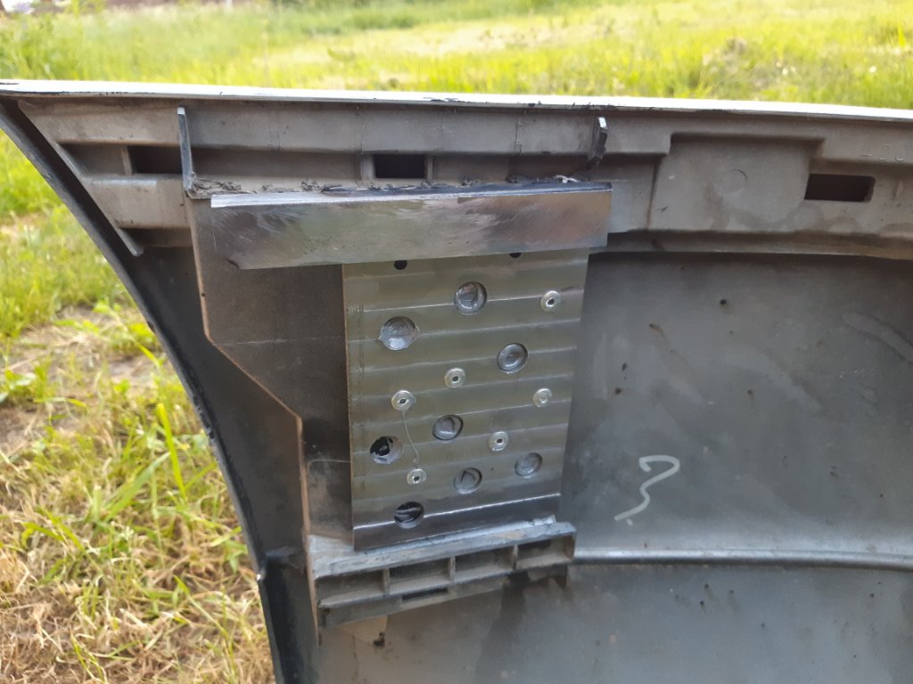Кронштейн на бампере закрепил с помощью 5мм заклёпок и дополнительно ещё промазал поксиполом