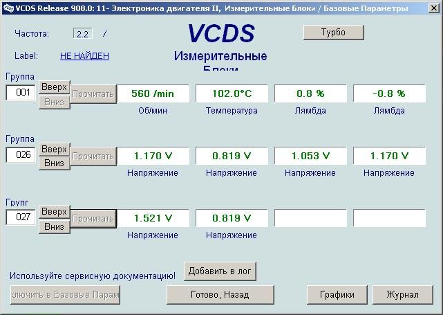 По катушкам я походу неправильно их смотрю. Зашел в блок 01 - Электроника двигателя1 и в 02 - Электроника двигателя2, далее 08-измеряемые величины и вписываю группы 026 и 027 - так там у меня просто напряжения (видимо на катушках) - при увеличении оборотов напряжение растет с 0,3-0,4В на ХХ, до 8 примерно на 4000об. а пропуски как посмотреть?