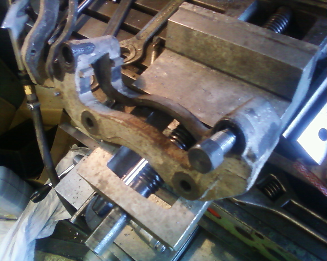 Поэтому в увлечениях.На ваш суд-колхоз или нет.Страшно заскрипел семейный паджеро 2.Путем долгих изысканий был вынесен вердикт-разболтаны направляющие суппортов.Скрежет был страшный,аж вибрация в руль отдавала,преимущественно на малых скоростях и при небольшом повороте.Скобы без втулок-цельные.Стоят как ковер самолет.Сами болты дешевле,но смысл только покупать их нет,так как общий износ был приличный.Выход такой.были выточены новые направляющие болты в +0.5 мм из стали 35 с последующей цементацией.Сами скобы были развернуты соответствующего размера разверткой.Результат-все супер,болтанки нет.Скрипа и скрежета нет.Пробег уже более 1500 км.