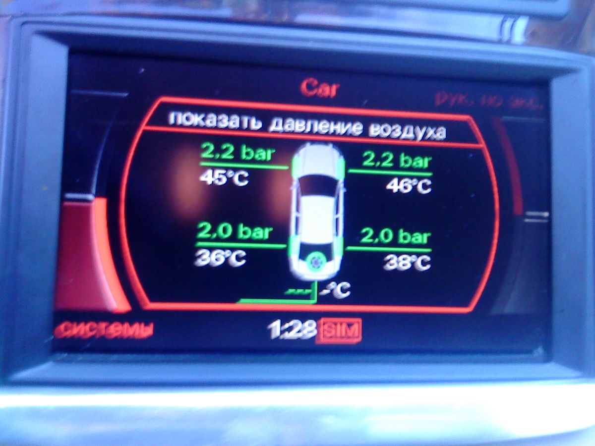 У меня система есть в комплектации, но я ее контроль отрубил в ММИ, колеса без датчиков.