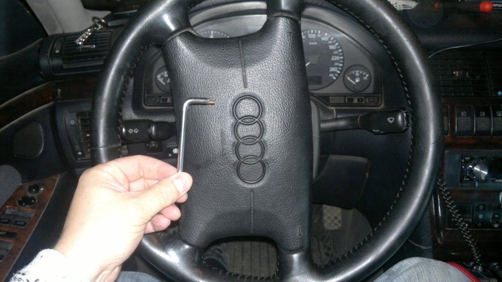 Для снятия подушки, руль можно повернуть так, один винт окажется вверху, второй снизу. Торкс 30