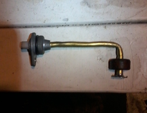 Так выглядит уже оттюнингованный датчик уровня масла от жигулей...<br />Т.е.его придётся выгнуть таким вот образом. Действовать надо аккуратно, т.к. трубка ломкая а внутри проводок (лучше слегка нагреть перед загибанием).