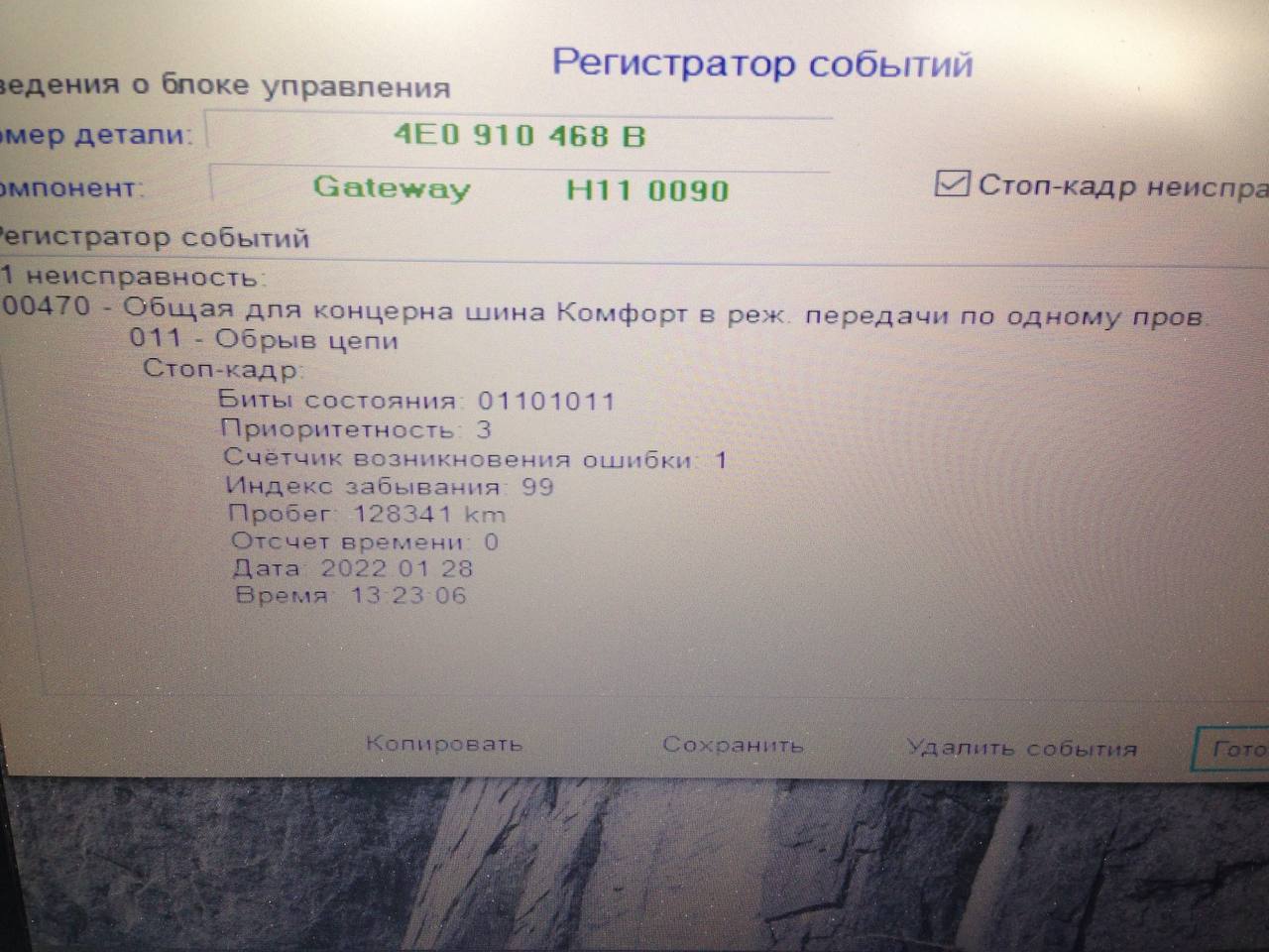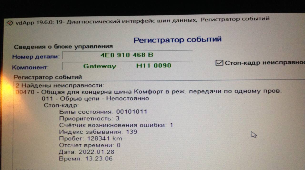Всем привет! Обратил внимание на вот такую ошибку в блоке гейтвейна на холодной машине, на морозе. После прогрева и получасовой езды ошибка пропадает. Как найти блок-виновник, у которого пропадает связь с кан? Пробежался по всем блокам кроме этого, нигде ошибок связанных с проблемами кан шины не обнаружил. На работу автомобиля никакого влияния не заметил. Кто что думает об этом? Спасибо.