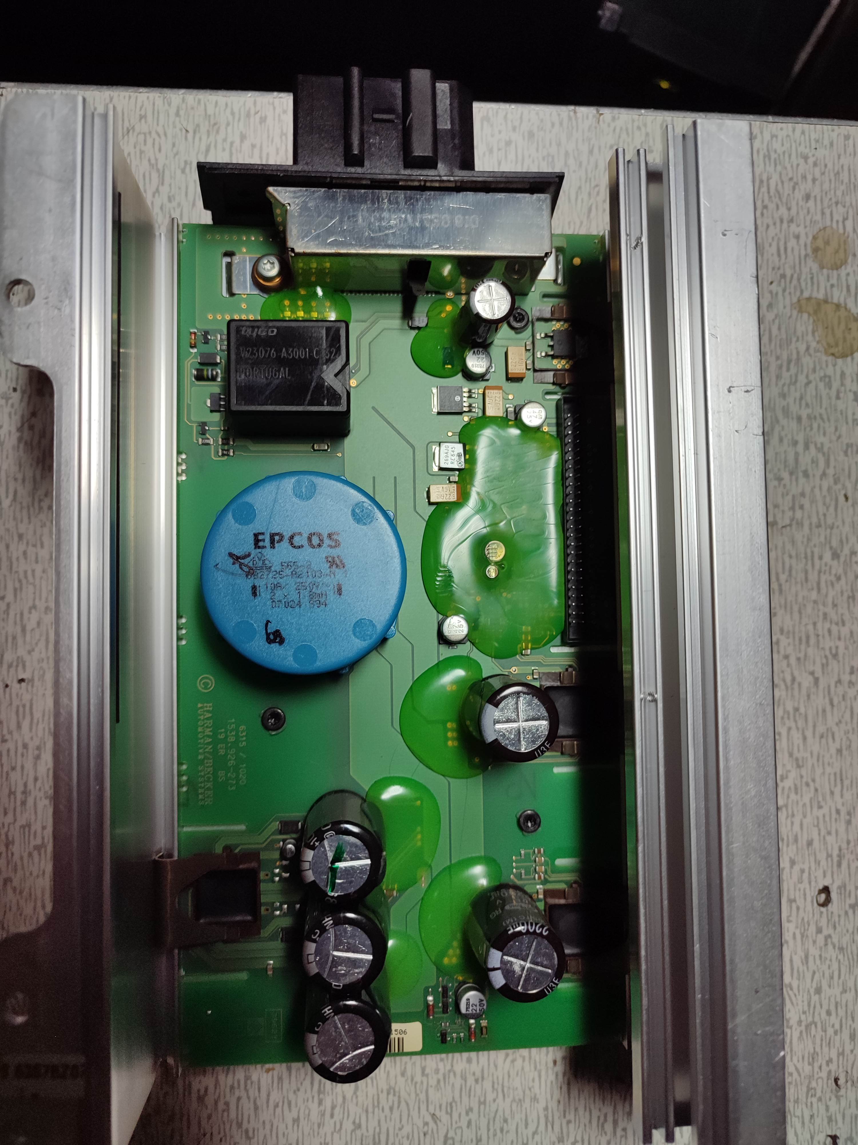 Всем привет. Нужна помощь. Усилитель, когда холодно, работает нормально. Летом периодически отключаются каналы. Сначала сабвуфер, потом динамики в передних дверях. В общем, звук никакой. Кто-то писал, что разобрал, поменял термопасту, поставил вентилятор. Решил посмотреть у себя. Снял усилитель, раскрутил, убрал верхнюю плату. Думаю, что это питание и предусилитель. Могу ошибаться. Осталась плата, что на радиаторе. Оконечник. Так? Вот у меня 4 выходных транзистора. Почему-то только три прижаты к радиатору. Один открытый. Это нормально? Я так понимаю, нужно как-то отжать пружины и снять пластины чёрные сверху транзисторов. Что-то пружины толстые, а пластины хлипкие. Кто выполнял данную процедуру, помогите.