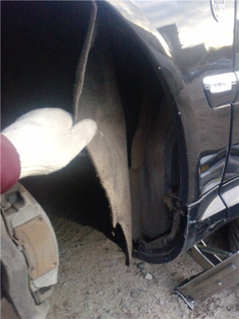 Итак, по арке крыла выкручиваем саморезы крепления заднего подкрылка переднего левого колеса.