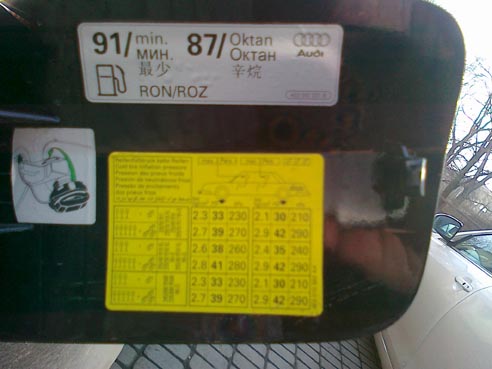vladl писал(а):информация по давлению в шинах - выше, чем на твоей наклейке.