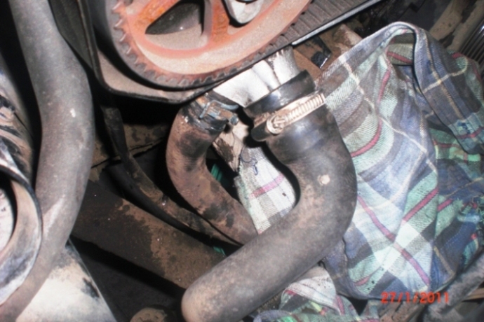 Чистим посадочное место термостата, ставим новый, затем немного опять помучавшись вставляем корпус термостата, закручиваем, одеваем патрубки, ремень ГРМ заталкиваем пальцами на место
