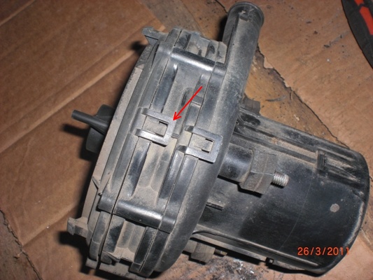 И вот прикупив два подшипника 608. Решил заняться их заменой.Насос СВВ(система вторичного воздуха)находиться в корпусе воздушного фильтра Для его снятия нужно снять корпус фильтра и открутить кронштейн крепления насоса снизу корпуса фильтра(три болта)