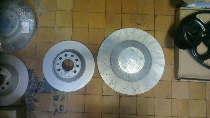 Судя по плитке, большой диск занимает 4 плитки ( 390 мм ), а маленький 3 плитки ( 310 мм ). Больше по размеру подходит для задних дисков. Передние 360 мм. на фоне 390 не такими маленькими будут 1pardon76