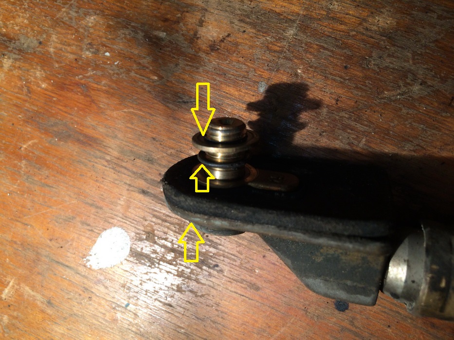 Пришлось положить 3 резиновых колечка. Интересная конструкция, болт выполняет функцию нипеля. А как например быть, если стойка не ремонтирована, и там как-бы клепка? Прорезь для отвертки делать?